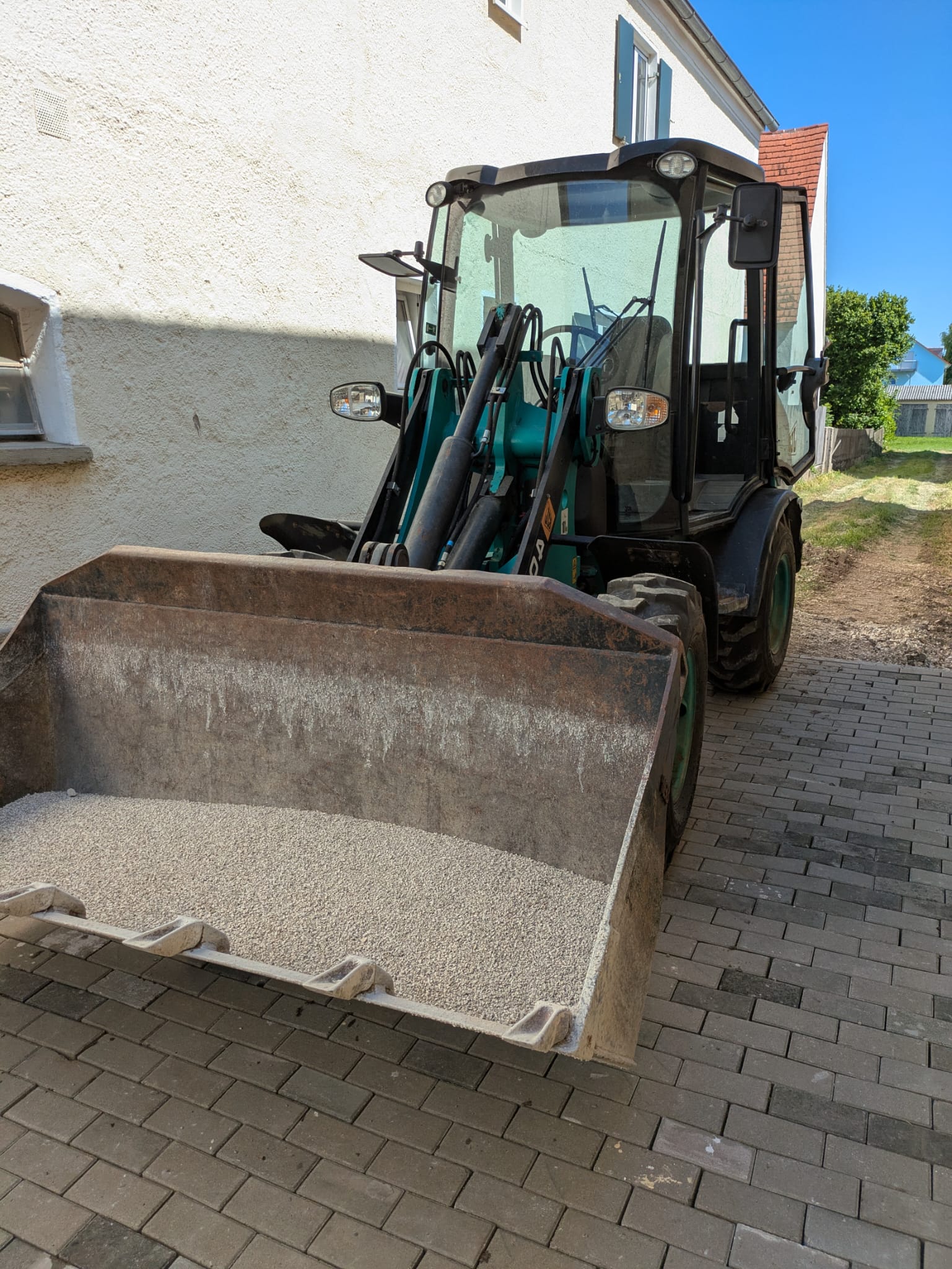 Mit Schaufel, Gabel oder Betonmischschaufel.